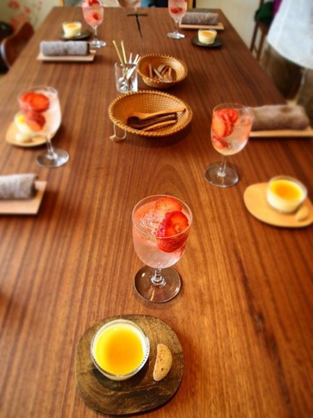 最後は、うえと特製プリンと、あまおういちごのサワージュース。